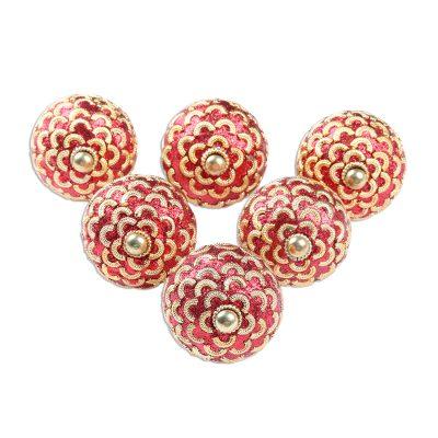 Golden Arcs,'Set of 6 Red Bead and Brass Plated Mango Wood Knobs'
