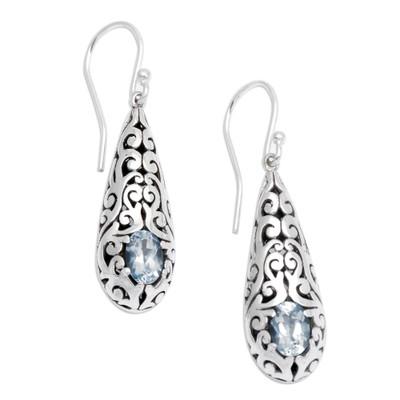 Dangling Vines,'Handcrafted Blue Topaz and Sterling Silver Dangle Earrings'
