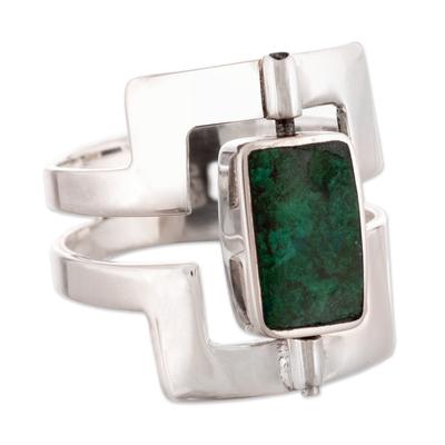 Facets of a Sage,'Reversible Natural Onyx and Chrysocolla Cocktail Ring'