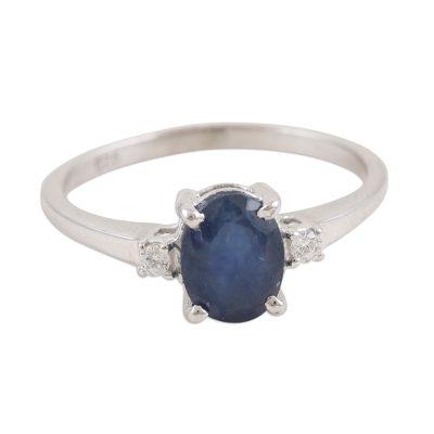 Depth of Dreams,'Rhodium-Plated Sapphire and Cubic Zirconia Ring'