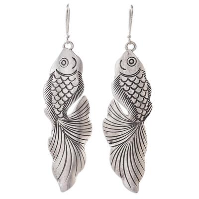 Goldfish Bliss,'Sterling Silver Goldfish Dangle Earrings from Thailand'