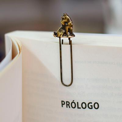 'Book-Themed Antiqued Golden Zamac Metal Clip Bookmark'