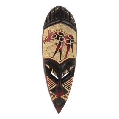 Red Giraffe,'Handcrafted Sese Wood African Giraffe Mask from Ghana'