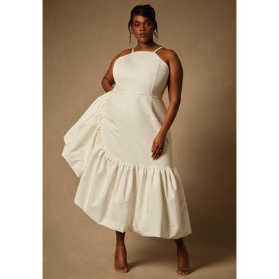 Plus Size Women's Bridal by ELOQUII Midi Flounce Dress in Pearl (Size 18)